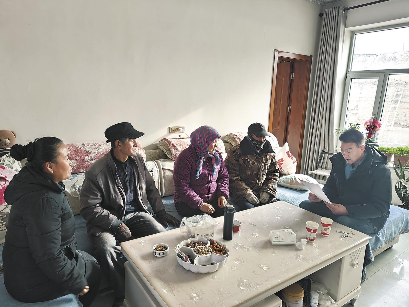 “鄉(xiāng)親們,今天咱們開(kāi)展‘一宣三促’活動(dòng),喧一喧一號(hào)文件精神,比如說(shuō)‘大力發(fā)展綠色、特色農(nóng)產(chǎn)品種養(yǎng),推進(jìn)農(nóng)產(chǎn)品加工業(yè)轉(zhuǎn)型升級(jí),實(shí)施農(nóng)業(yè)品牌精品培育計(jì)劃,打造特色農(nóng)業(yè)產(chǎn)業(yè)集群,提升農(nóng)業(yè)產(chǎn)業(yè)化水平’這一條,對(duì)咱們農(nóng)民來(lái)說(shuō)是開(kāi)春以來(lái)的大喜訊?!?月24日一大早,青海省海東市民和回族土族自治縣巴州鎮(zhèn)祁家村村委會(huì)掛起了“一宣三促”橫幅,駐村第一書(shū)記孔德香和群眾自備小板凳相聚在村廣場(chǎng)上,拉開(kāi)了“板凳課堂”的序幕。