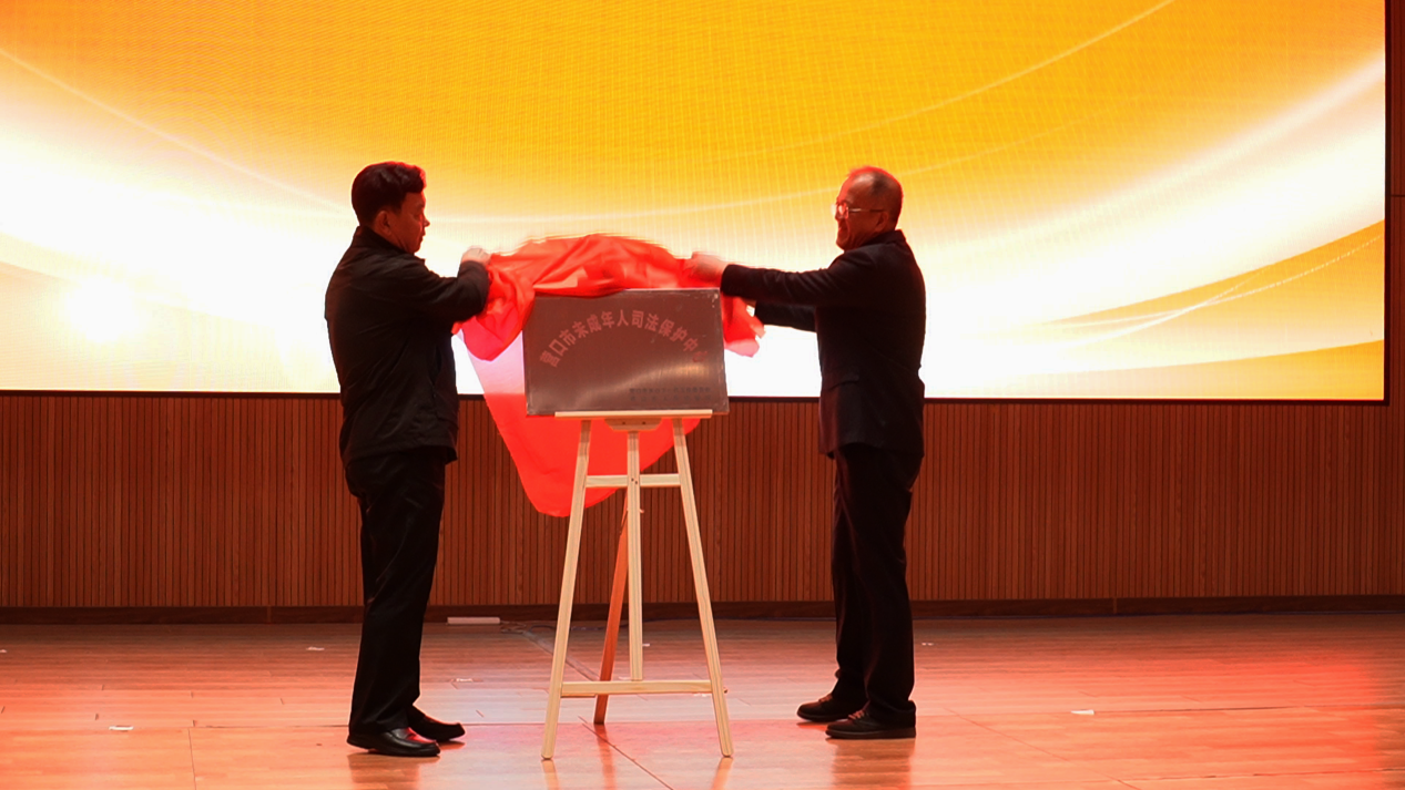 市人民檢察院黨組副書記、分管日常工作的副檢察長(zhǎng)高兵與市關(guān)工委主任王靜春共同為營(yíng)口市未成年人司法保護(hù)中心揭牌。