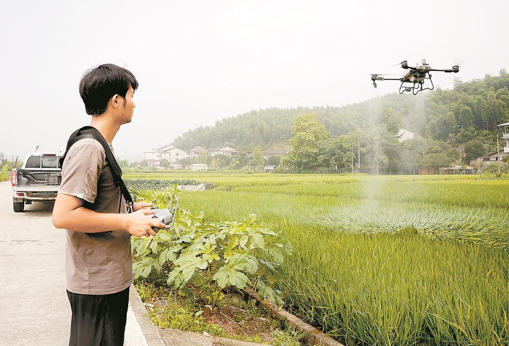 “現(xiàn)在用無人機,每天能完成幾百畝的飛防作業(yè),扣除發(fā)電、無人機折舊等成本,一天收入近1000元?!毕申栨?zhèn)鐿杭家庭農(nóng)場負(fù)責(zé)人王鐿杭說,他今年23歲,不僅自己種糧,還和其他無人機、收割機、插秧機機手一起,為周邊鄉(xiāng)鎮(zhèn)的種糧大戶提供服務(wù)。
