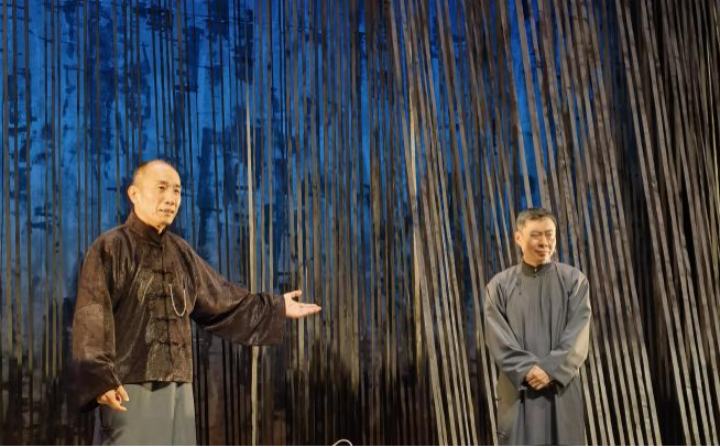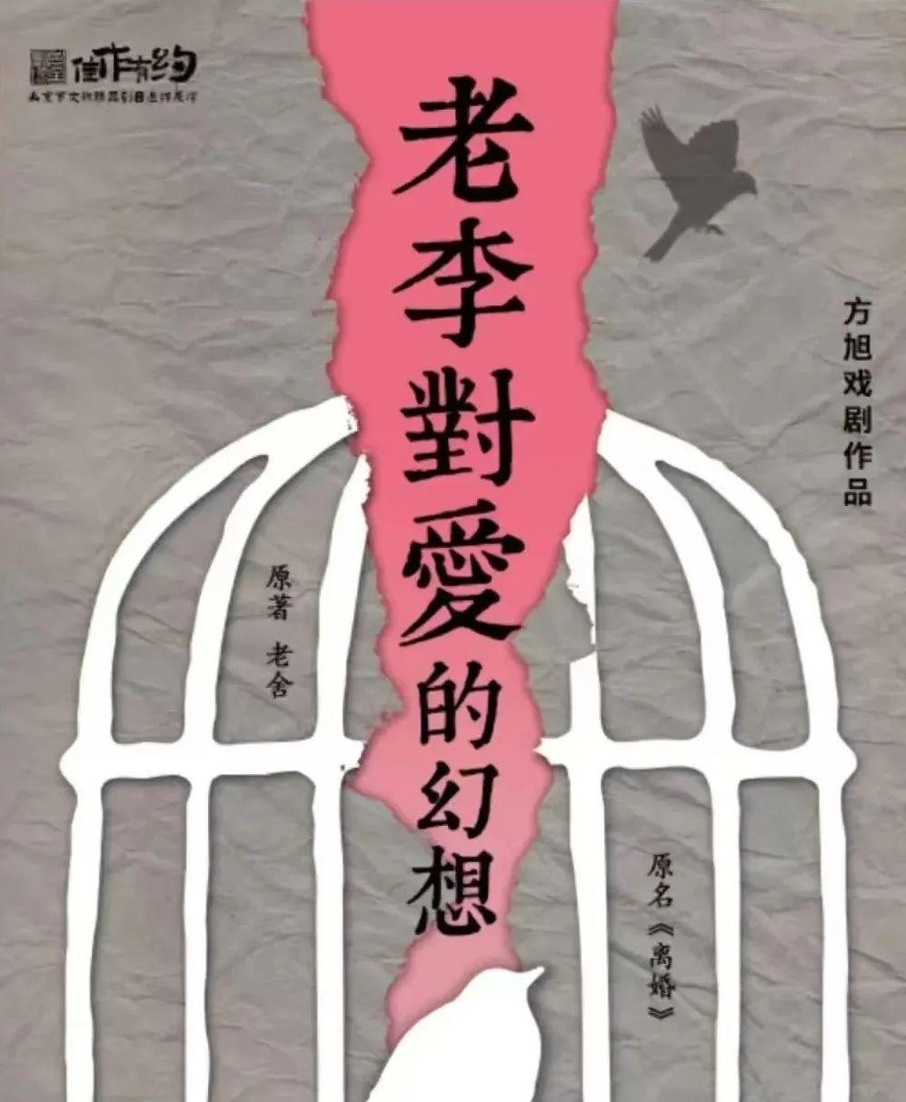 2025年3月末,由方旭、郭笑主演的話劇《老李對(duì)愛的幻想》在北京老舍劇場(chǎng)成功展演。該劇改編自老舍同名長(zhǎng)篇小說《離婚》,講述主人公小“智識(shí)”分子老李掙扎于詩(shī)意幻想和庸俗實(shí)際,在傳統(tǒng)和變革進(jìn)退兩難的苦悶中,經(jīng)由一起“政治”暗殺促成自我蛻變的無奈故事。劇中著力表現(xiàn)民國(guó)離婚鬧劇風(fēng)潮下,小市民的情感困境及文化心態(tài),正如老李的舞臺(tái)形象:一身灰色長(zhǎng)衫,圍著藍(lán)色圍巾——灰藍(lán)色在老舍筆下是“最不得人心的”,因?yàn)椤耙挥錾详?yáng)光管保只剩下灰,一點(diǎn)也不藍(lán)”。