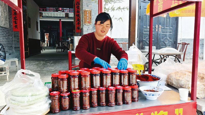 “現(xiàn)在真是大變樣!”鄭翠擦著餐桌感慨道,“我一個普通農(nóng)民,本是給孩子做的辣醬,竟然得到這么多人的認可,這讓我非常開心?!?023年,村上免費組織村民學(xué)習(xí)抖音短視頻拍攝,岳綿綿親自幫助她。鏡頭里既有辣子鍋盔的制作過程,也有青訓(xùn)班舊址的紅色故事。如今這家不足200平方米的農(nóng)家樂,自從“觸網(wǎng)”后,本著薄利多銷的原則,依靠品質(zhì)和服務(wù),游客翻了一番,自制辣醬年銷售額常常供不應(yīng)求。