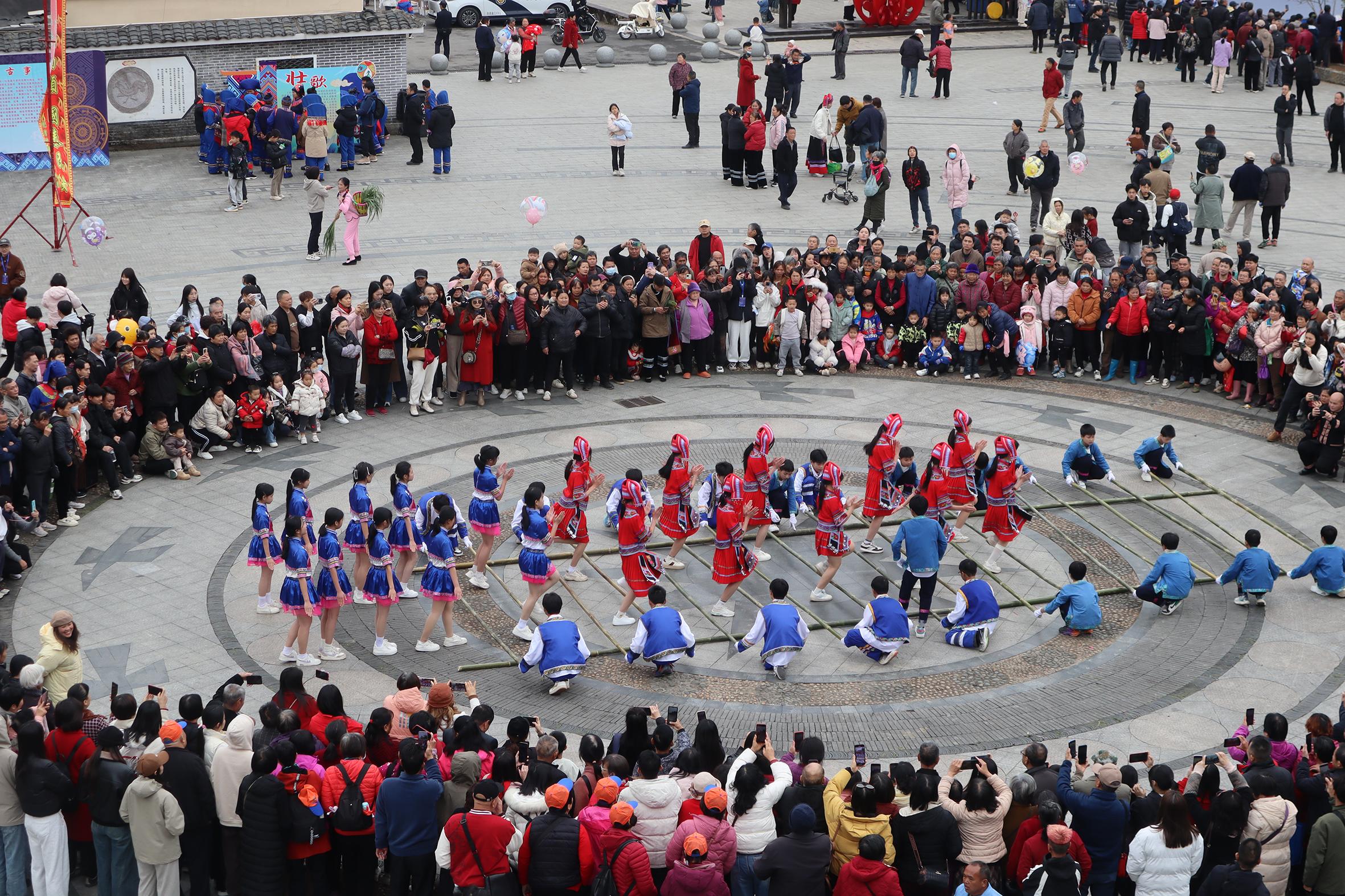 廣東各地還積極探索“村晚+”特色節(jié)慶活動,匯聚四方人氣、促進(jìn)文旅融合。“大眾利(壯語,意為大家好),壯家有個三月三,三月初三歌墟節(jié)呀歌墟節(jié)……”2025年全國“四季村晚”春季示范展示活動——廣東連山“三月三”壯族歌墟節(jié)活動在清遠(yuǎn)連山壯族瑤族自治縣小三江鎮(zhèn)舉行,粵湘桂三?。▍^(qū))的民間“歌王”同臺斗歌。此次活動共有2.67萬人次參與,帶動消費1428.45萬元。