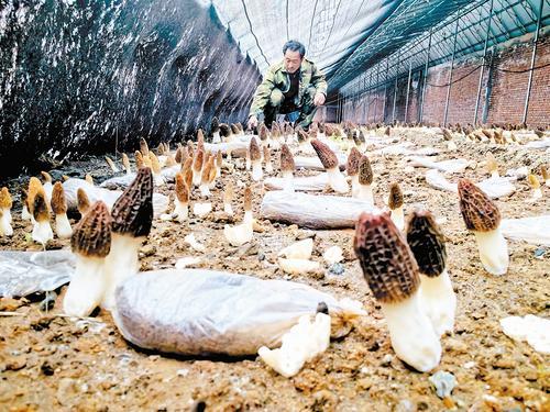 4月16日,豐寧滿族自治縣湯河鄉(xiāng)料坡道村村民正在采收羊肚菌。記者 陳寶云 攝