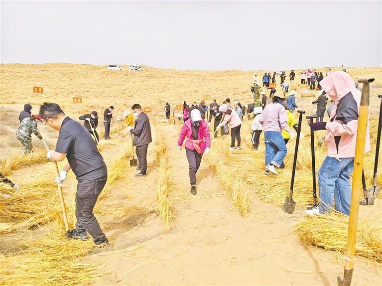 協(xié)同治理的突破,激活了多元力量的參與。平羅縣依托林長制搭建的協(xié)同平臺,將各級林長責(zé)任區(qū)與治沙任務(wù)精準(zhǔn)對接,通過建立黨建帶林建工作機(jī)制,引進(jìn)社會資本參與后期養(yǎng)護(hù)管理?!?月25日,金融系統(tǒng)的研學(xué)團(tuán)隊來這和我們一起扎草方格、種樹苗,大家干得熱火朝天!此外,青年志愿者隊伍也絡(luò)繹不絕……”王建保說,“林長制就像一根‘指揮棒’,將各方力量擰成一股繩,讓治沙從‘單打獨(dú)斗’升級為全社會協(xié)同作戰(zhàn)?!?/p>
