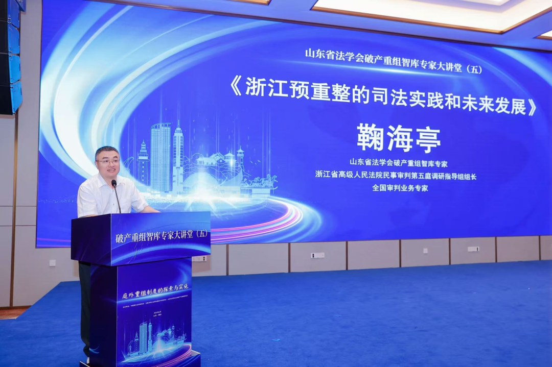 山東省法學(xué)會(huì)破產(chǎn)重組智庫(kù)專(zhuān)家、浙江省高級(jí)人民法院民事審判第五庭調(diào)研指導(dǎo)組組長(zhǎng)、全國(guó)審判業(yè)務(wù)專(zhuān)家鞠海亭作《浙江企業(yè)預(yù)重整的司法實(shí)踐和未來(lái)發(fā)展》專(zhuān)題發(fā)言,介紹了浙江省高院在制定企業(yè)預(yù)重整規(guī)范性意見(jiàn)中的探索以及浙江溫州、金華和杭州等地方法院的相關(guān)探索、實(shí)施效果和存在的問(wèn)題,強(qiáng)調(diào)了在企業(yè)預(yù)重整案件中管理人市場(chǎng)化選擇的重要性、破產(chǎn)企業(yè)財(cái)產(chǎn)保全措施的必要性、打擊破產(chǎn)“逃廢債”行為的難點(diǎn)與對(duì)策,以及個(gè)人債務(wù)集中清理案件審理中遇到的困難、問(wèn)題以及對(duì)策等。