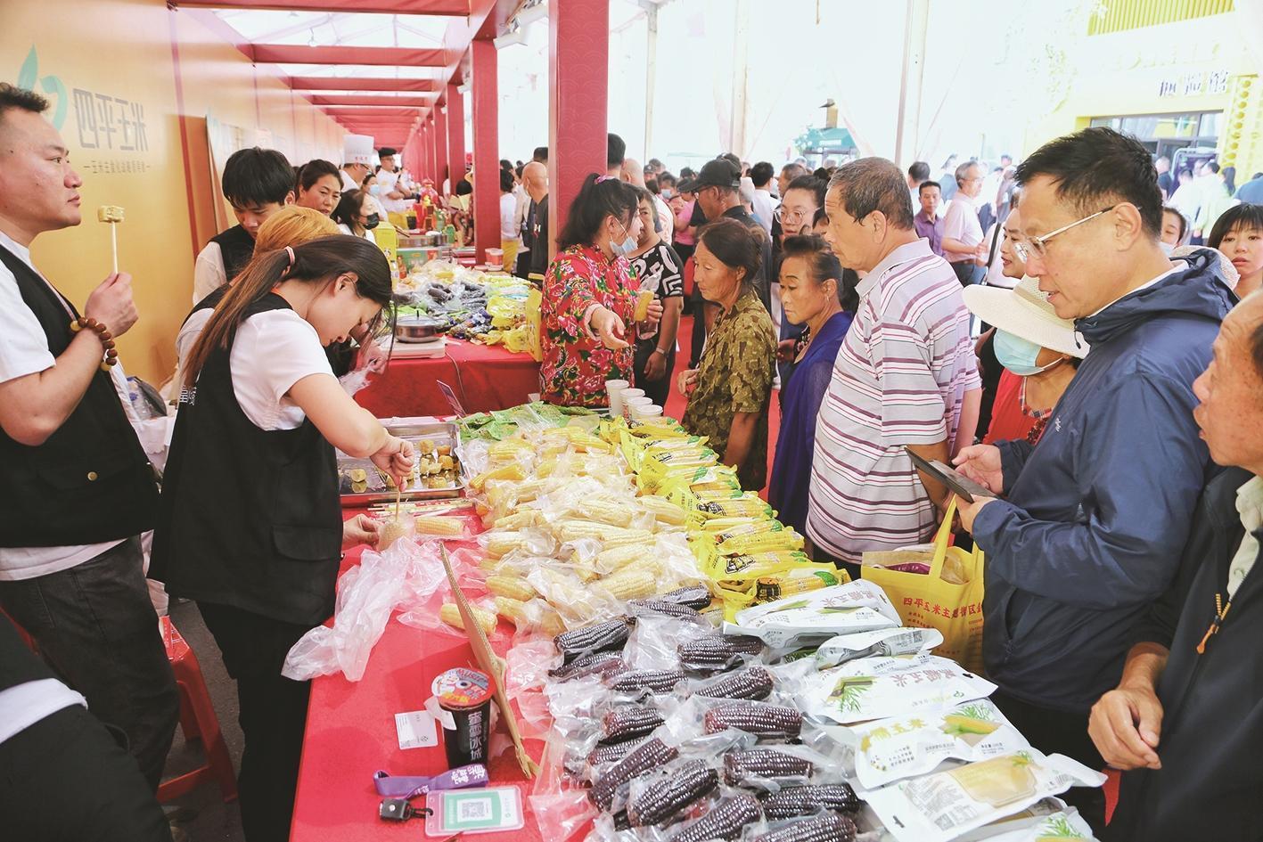 四平玉米主題街區(qū)鮮食玉米產(chǎn)品展區(qū)人氣爆棚。李坤 攝
