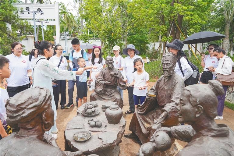 7月9日,位于海南省儋州市中和鎮(zhèn)的東坡書院,許多游客興致勃勃地觀展覽、聽講解、購文創(chuàng)。相比以往單純地漫步游覽,現(xiàn)在的東坡書院有了許多“新玩法”,文創(chuàng)開發(fā)、沉浸式演藝等文旅融合發(fā)展新模式為古樸的景區(qū)增添了吸引力。