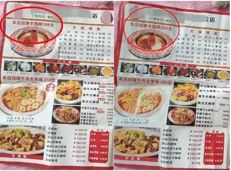 在曝光視頻中,該博主一行人通過對比實測發(fā)現(xiàn),該店針對本地人與外地游客使用“陰陽菜單”,同款“羊圍脖”菜品本地價198元,外地游客價達298元,價差100元;同時商家宣稱1600克的羊肉,實際兩桌分別僅為1174.5克和1204克,缺斤短兩問題突出。面對質(zhì)疑,餐廳負責(zé)人竟辯解稱:“咱們當(dāng)?shù)厝司褪钱?dāng)?shù)貎r,外地人有旅行社進行溝通?!边@種地域歧視性定價更引發(fā)了大眾不滿。