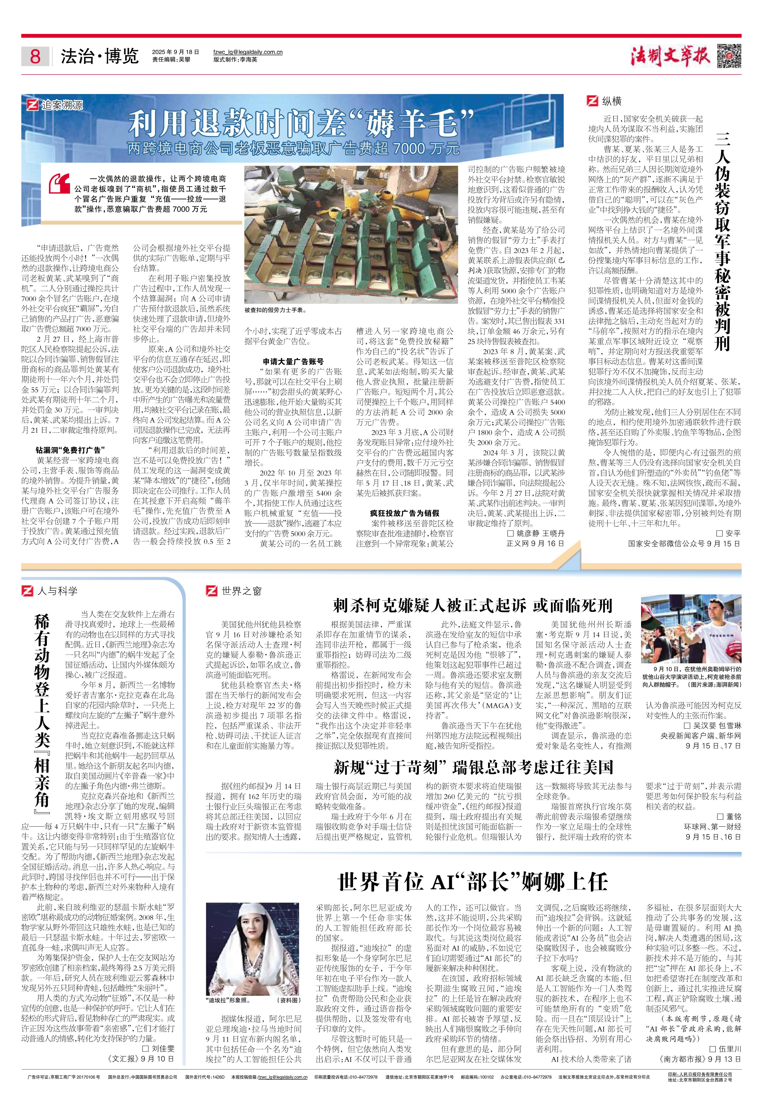 2025年9月18日《法制文萃報》總第2873期8版