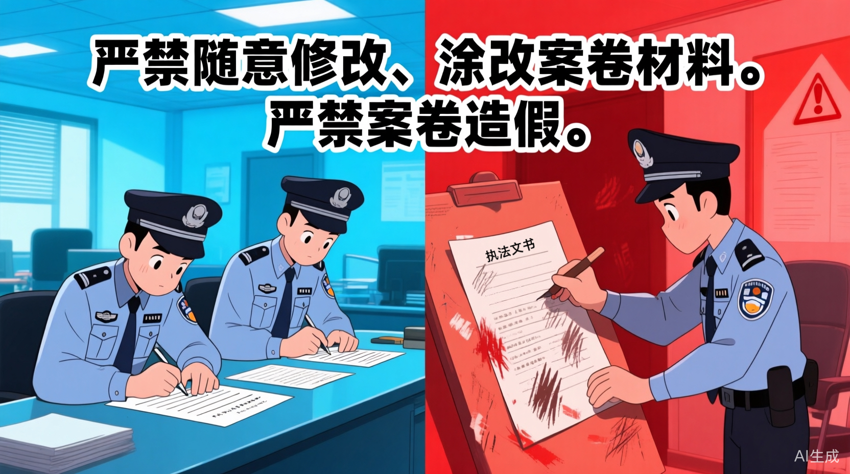 行政執(zhí)法文書應(yīng)當(dāng)制作規(guī)范、要素齊備、表述準(zhǔn)確、字跡清晰。行政執(zhí)法案卷應(yīng)當(dāng)規(guī)范標(biāo)準(zhǔn)、真實完整。嚴(yán)禁隨意修改、涂改案卷材料。嚴(yán)禁案卷造假。