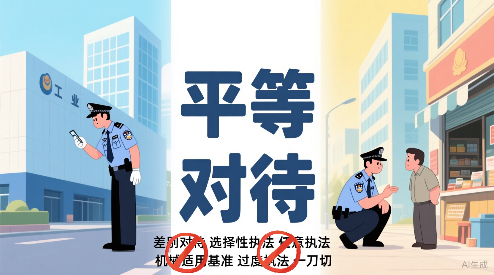堅持平等對待當(dāng)事人。行使行政裁量權(quán)應(yīng)當(dāng)符合法律目的,排除不相關(guān)因素的干擾,所采取的措施和手段應(yīng)當(dāng)必要、適當(dāng),應(yīng)當(dāng)盡可能避免采用損害當(dāng)事人權(quán)益的方式。嚴(yán)禁刻意差別對待當(dāng)事人。嚴(yán)禁選擇性執(zhí)法、任性執(zhí)法。嚴(yán)禁機(jī)械適用行政裁量權(quán)基準(zhǔn)。嚴(yán)禁過度執(zhí)法、“一刀切”執(zhí)法。
