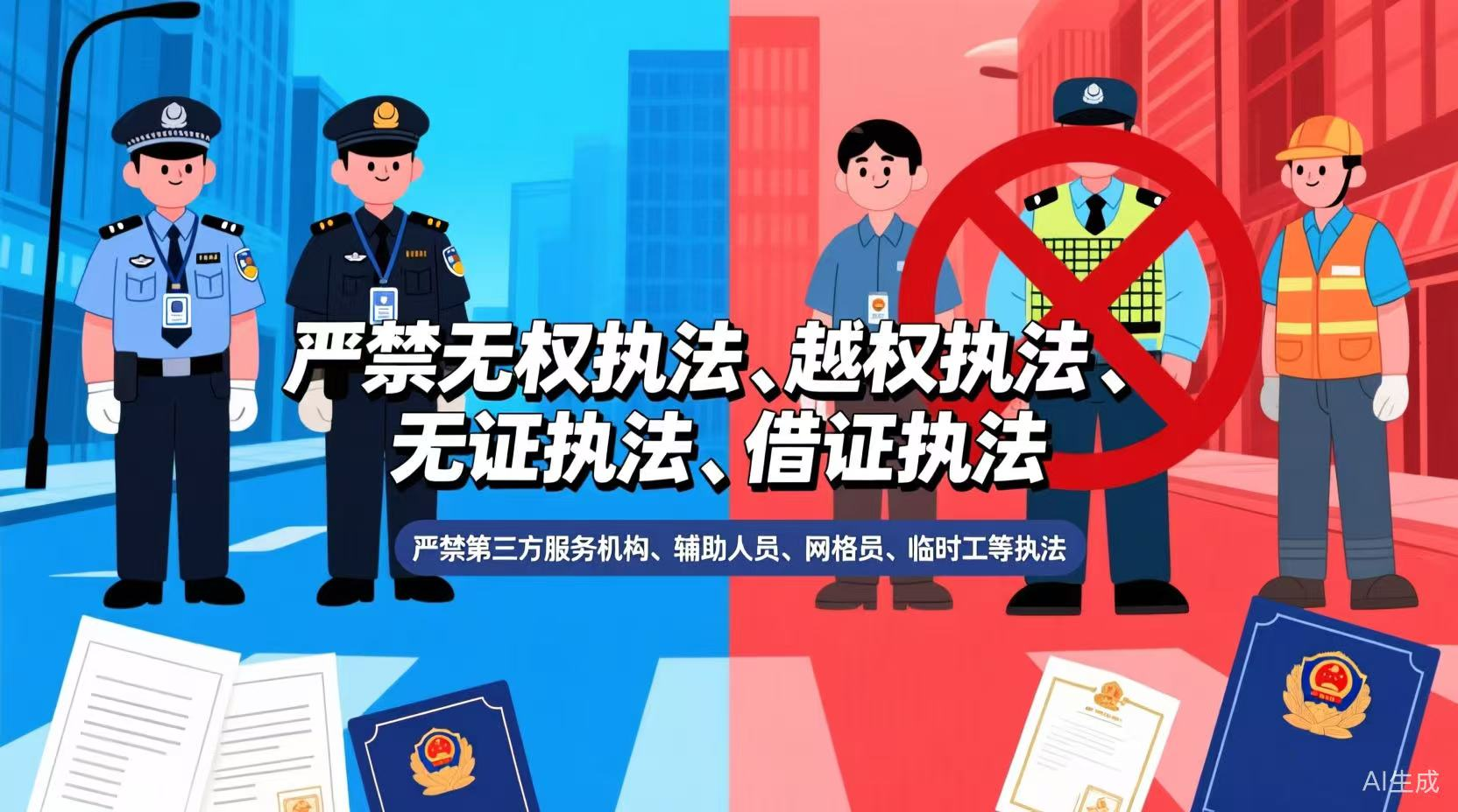 嚴(yán)禁無權(quán)執(zhí)法、越權(quán)執(zhí)法、無證執(zhí)法、借證執(zhí)法。嚴(yán)禁第三方服務(wù)機(jī)構(gòu)、輔助人員、網(wǎng)格員、臨時工等執(zhí)法。