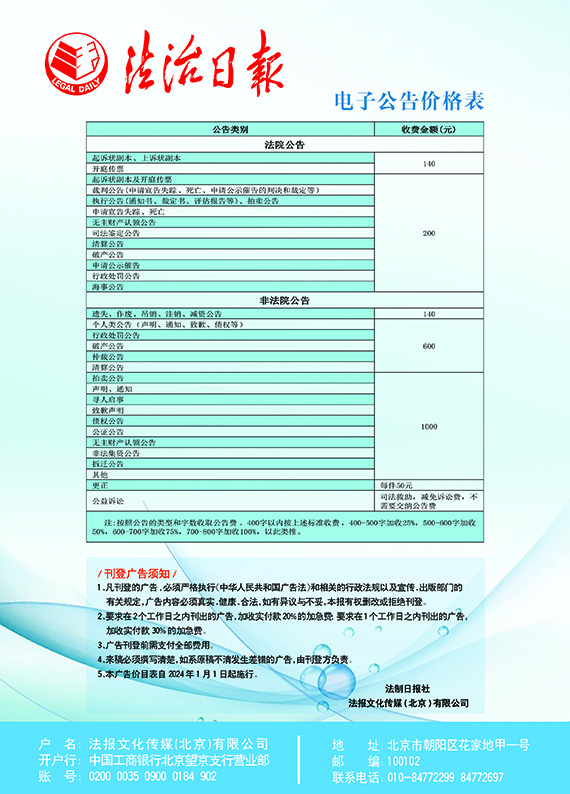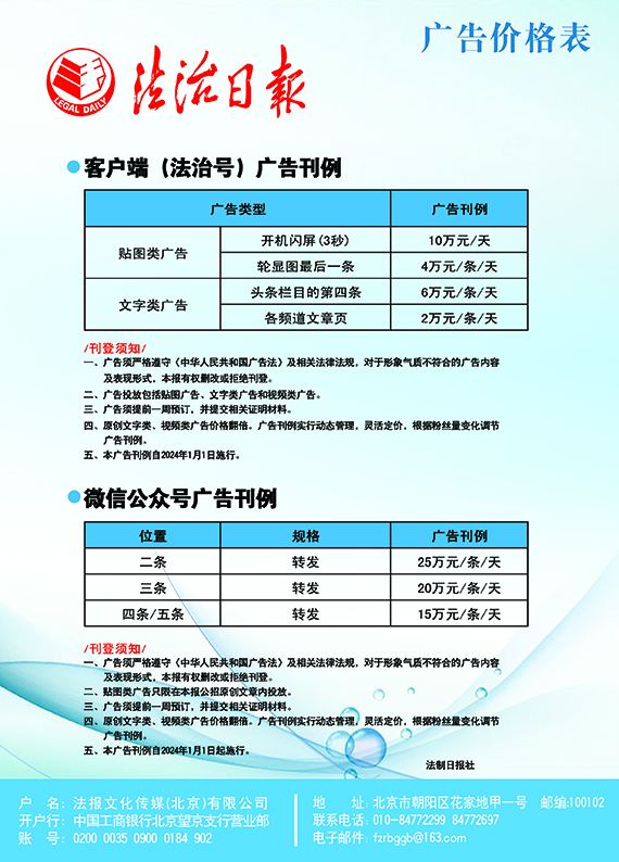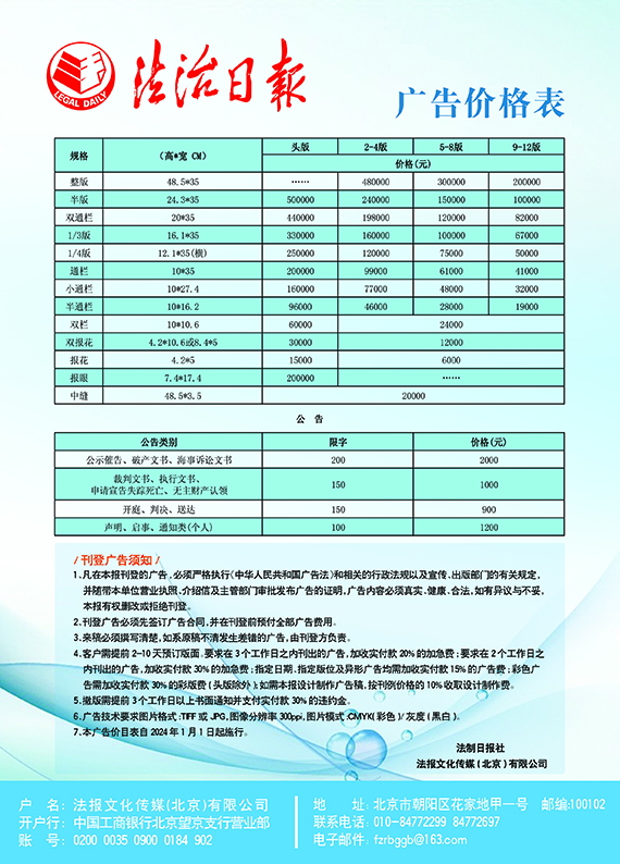 法治日報電子公告價格表