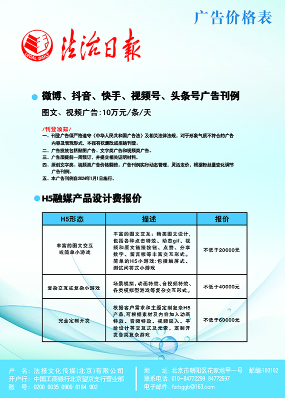 法治日報新媒體廣告價格表