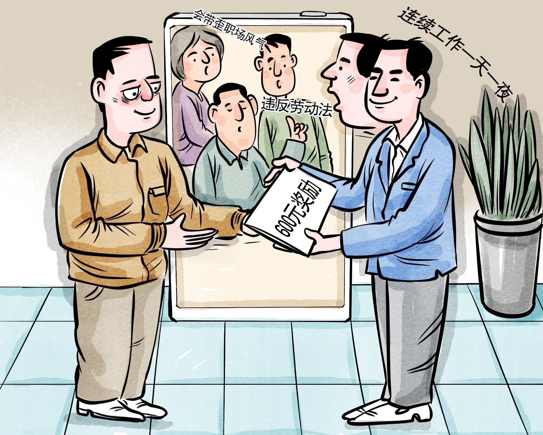 點評:給超負荷加班發(fā)放獎勵看似肯定員工的付出,實則是在誘導(dǎo)員工透支健康。連續(xù)24小時的極端工作方式,既違反勞動法,也會帶歪職場風(fēng)氣,這種導(dǎo)向要不得,理應(yīng)依法糾正。