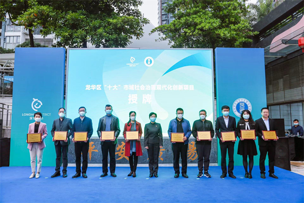 1月15日,廣東省深圳市龍華區(qū)委副書(shū)記、政法委書(shū)記皮勇華出席龍華區(qū)平安建設(shè)志愿服務(wù)中心、平安廣場(chǎng)揭牌儀式,向區(qū)級(jí)、街道級(jí)平安建設(shè)志愿隊(duì)伍授旗,為龍華區(qū)“十大”市域社會(huì)治理創(chuàng)新項(xiàng)目單位授牌。