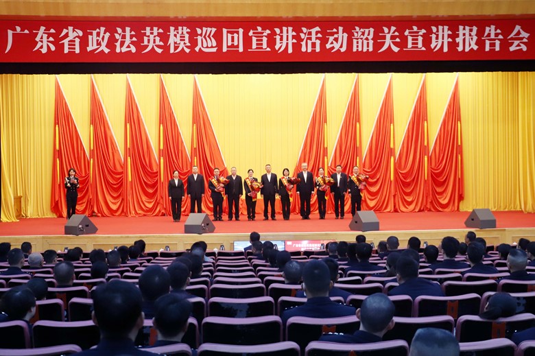 韶關(guān)市委常委、政法委書記李澤航在致辭中表示,各位政法英模圍繞掃黑除惡專項斗爭中的鐵軍本色、堅守高墻做好罪犯教育轉(zhuǎn)化工作、在涉外審判中胸懷“國之大者”、以檢察匠心踐行為民初心、在禁毒戰(zhàn)線上浴血奮戰(zhàn)等主題,分享了先進集體故事、個人心路歷程,其事跡感人、形象可親、品格可敬,引發(fā)與會人員強烈共鳴。全韶關(guān)市政法機關(guān)要學(xué)習(xí)英模,汲取奮進力量,打造一支讓黨放心、人民群眾滿意的高素質(zhì)政法隊伍,推進更高水平的平安韶關(guān)、法治韶關(guān)建設(shè)。