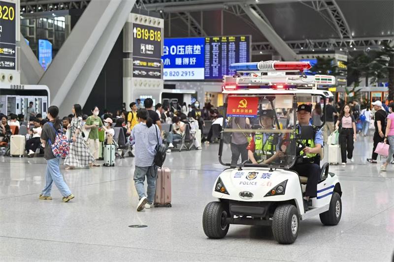今年端午,“2小時高鐵圈”成為旅客出游主要范圍,粵港澳大灣區(qū)、粵湘兩地、兩廣區(qū)域的中短途線路備受青睞。為凈化出行環(huán)境,廣州鐵路公安處從機關及所隊調配近百名警力,部署至廣州南站等客流重點樞紐及重點列車,提升見警率與管事率,嚴厲打擊霸座、猥褻、醉酒滋事,以及盜竊、詐騙等侵害旅客權益的違法犯罪行為,切實增強旅客出行安全感。