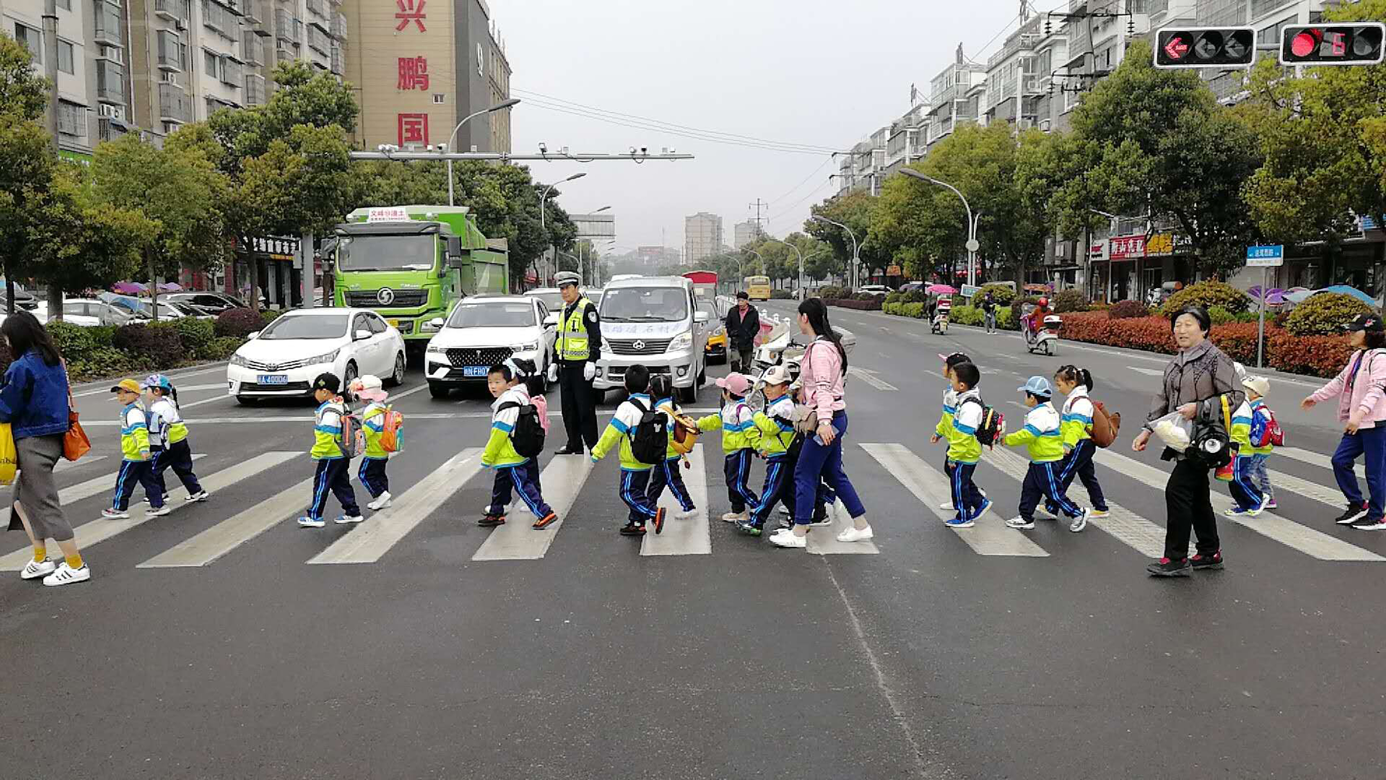 由于參加此次活動的師生眾多,隊伍長,途經(jīng)的路段車輛、人流相對集中,為此,城區(qū)中隊交警提前奔赴各大路口和重點(diǎn)路段,采取臨時交通管制以及相關(guān)安保措施,并提醒過往車輛駕駛員耐心等候、減速慢行、注意避讓。由15名城區(qū)中隊交警分成三隊護(hù)送,并實(shí)行“領(lǐng)頭、守中、壓尾”的執(zhí)勤方式,全程徒步貼心護(hù)送。一路上,護(hù)送交警與師生們熱情互動,并利用行進(jìn)時間開展交通安全宣傳。經(jīng)過近一個小時的護(hù)送,師生們安全到達(dá)祭掃地點(diǎn)。對交警的全程貼心護(hù)送,校方及學(xué)生家長給予一致稱贊。