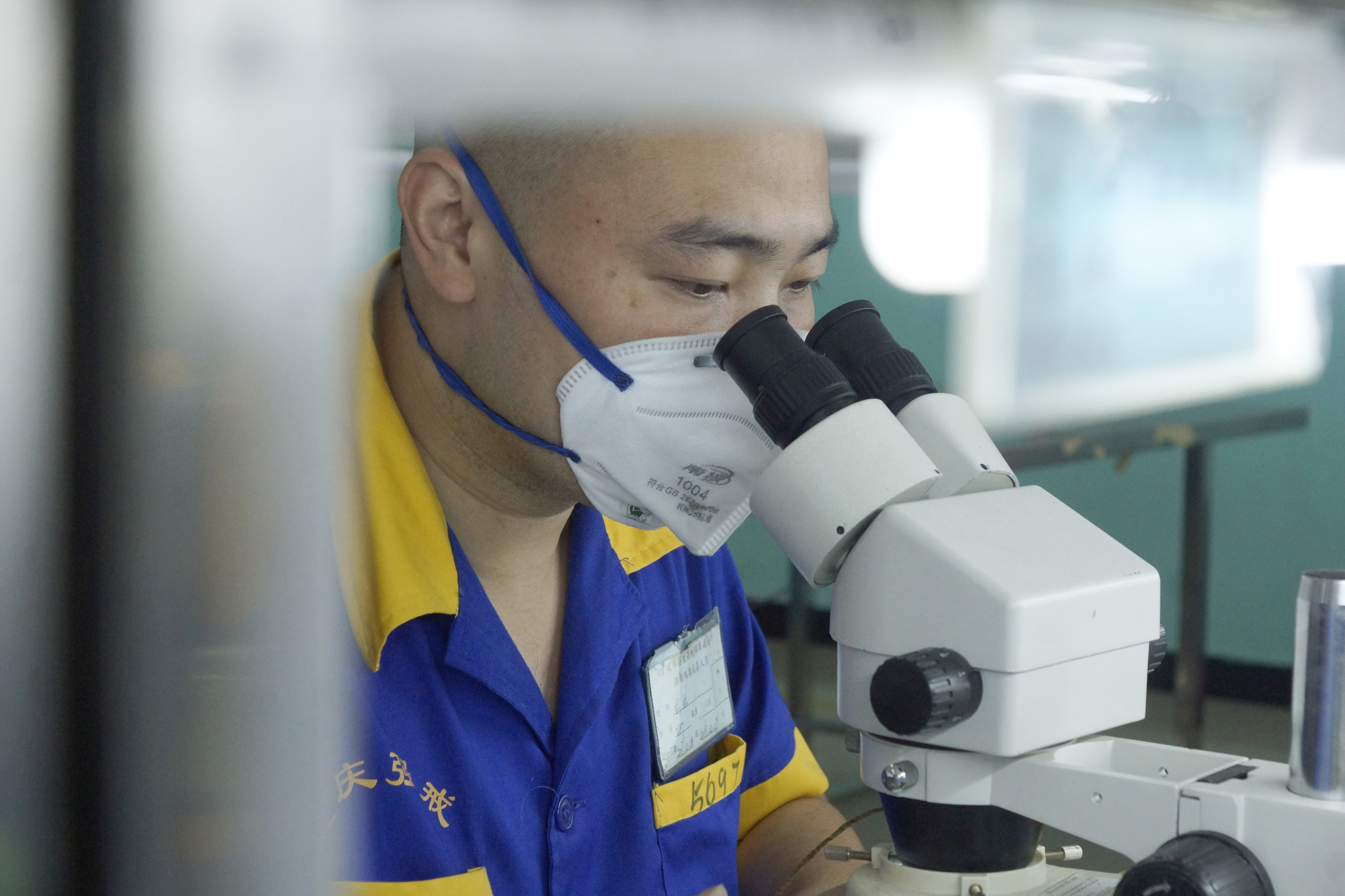 習(xí)藝生產(chǎn)車間,一名戒毒人員一絲不茍地參加康復(fù)勞動(dòng)