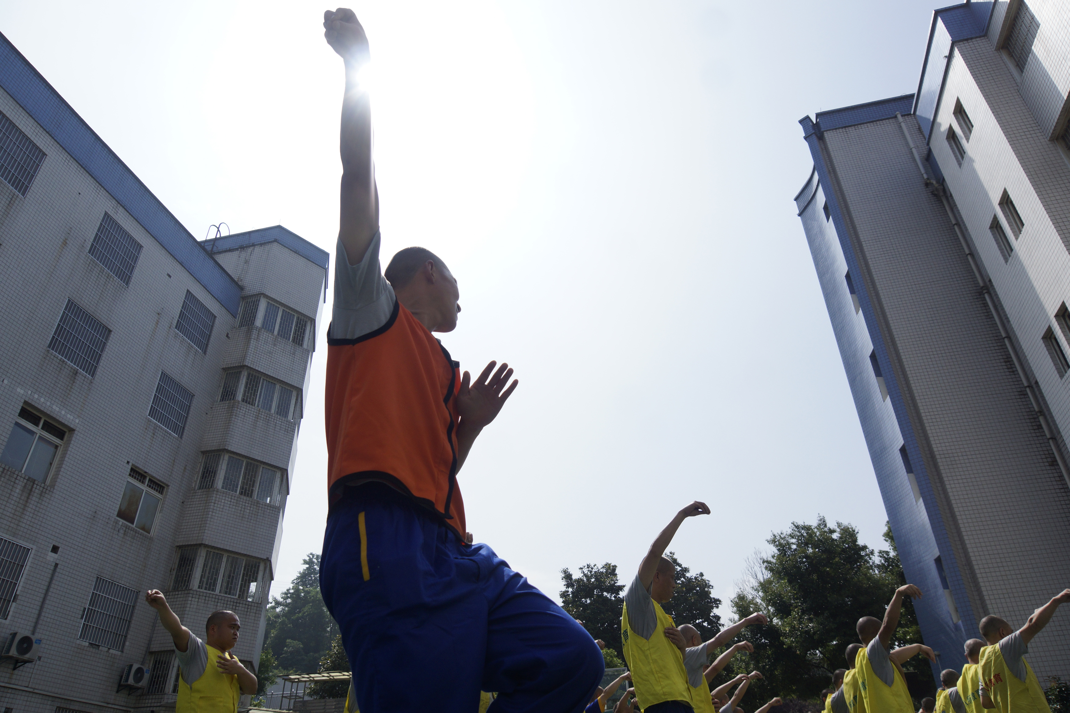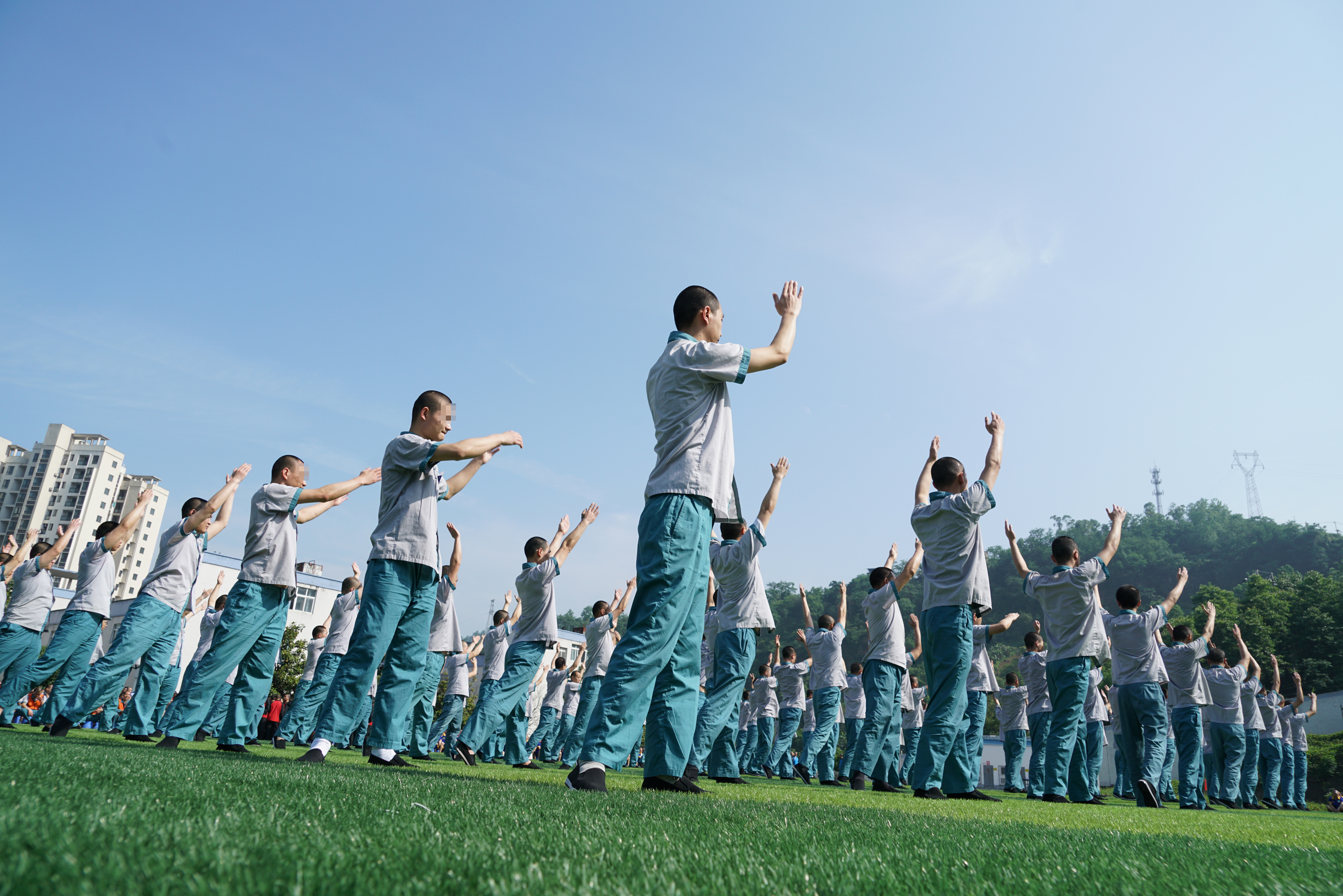 大隊(duì)籃球場(chǎng),戒毒人員練習(xí)太極拳康復(fù)健身