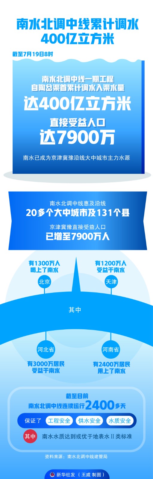 圖表:南水北調(diào)中線累計調(diào)水400億立方米