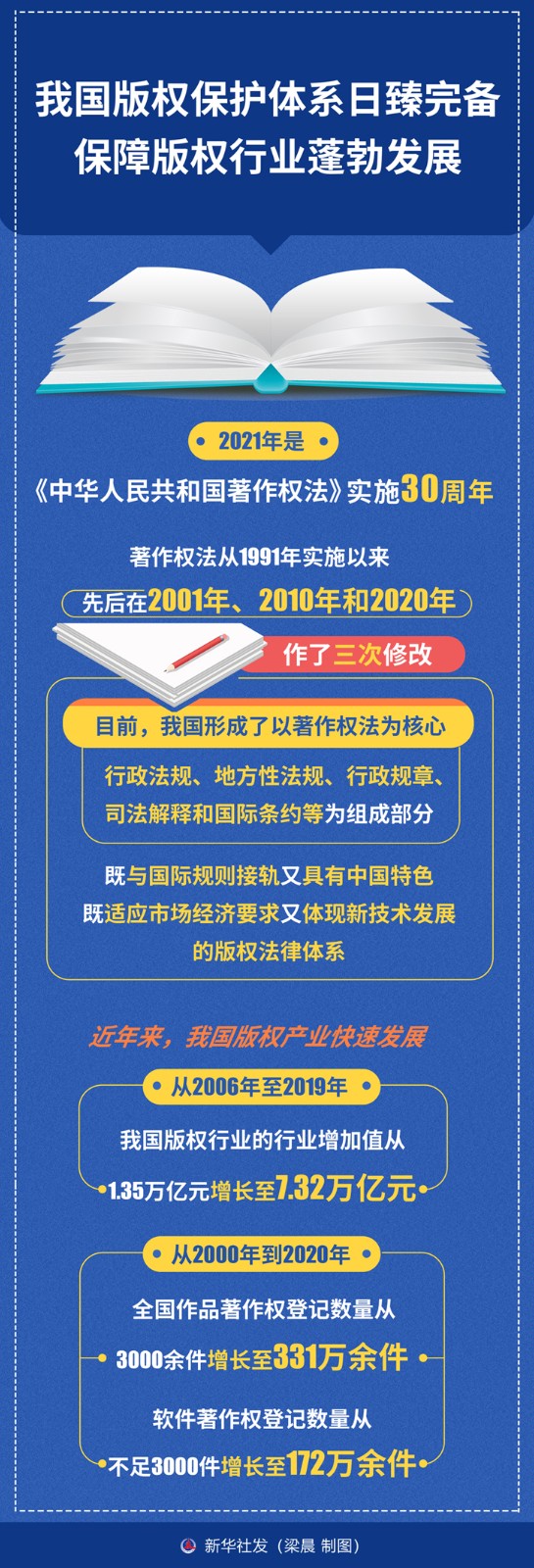 2021年是《中華人民共和國著作權(quán)法》實施30周年,記者從10月16日在杭州開幕的第八屆中國國際版權(quán)博覽會上獲悉,30年來我國版權(quán)保護(hù)體系日臻完備,保障版權(quán)行業(yè)蓬勃發(fā)展。