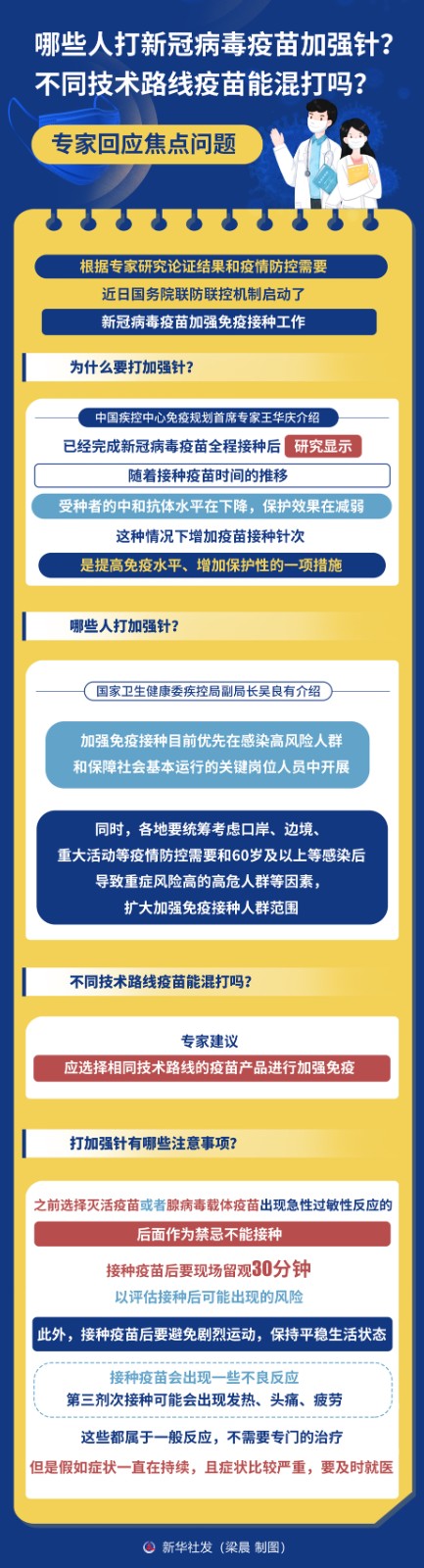 圖表:哪些人打新冠病毒疫苗加強針?不同技術路線疫苗能混打嗎?專家回應焦點問題