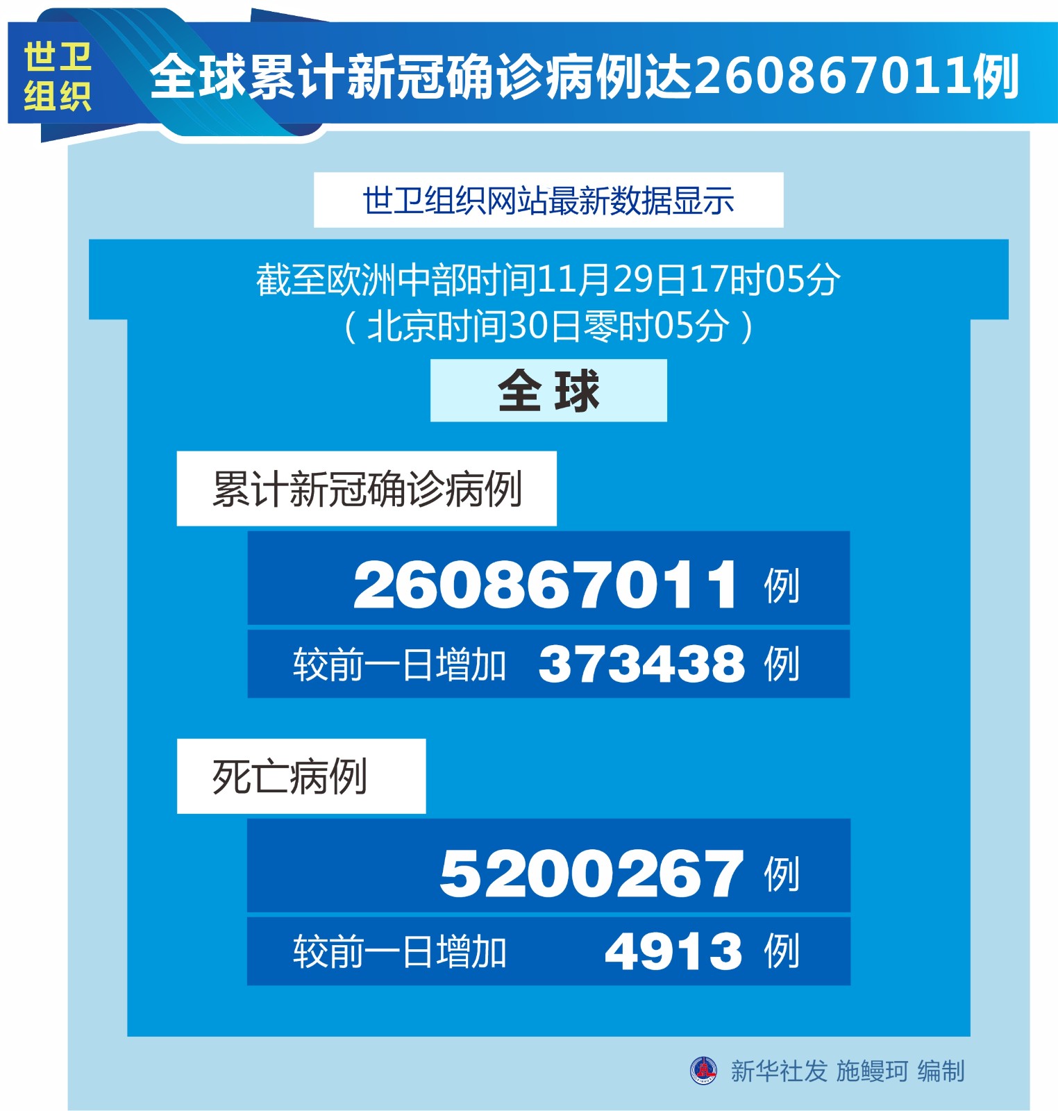圖表:世衛(wèi)組織:全球累計新冠確診病例達260867011例