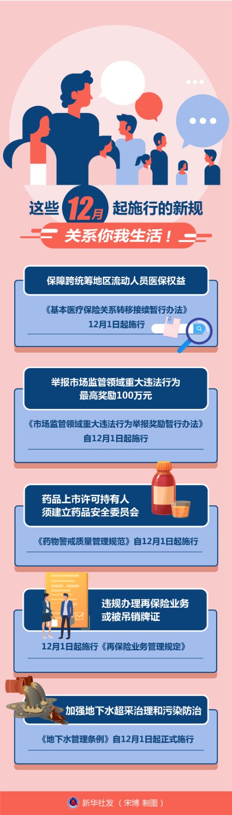 當(dāng)時光的腳步來到2021年的最后一個月,一批影響你我的重要新規(guī)也將開始施行。流動人員的醫(yī)保權(quán)益更有保障,舉報市場監(jiān)管領(lǐng)域重大違法行為可獲獎勵,藥品安全相關(guān)管理規(guī)范進(jìn)一步完善……美好的生活,見證法治的進(jìn)步。