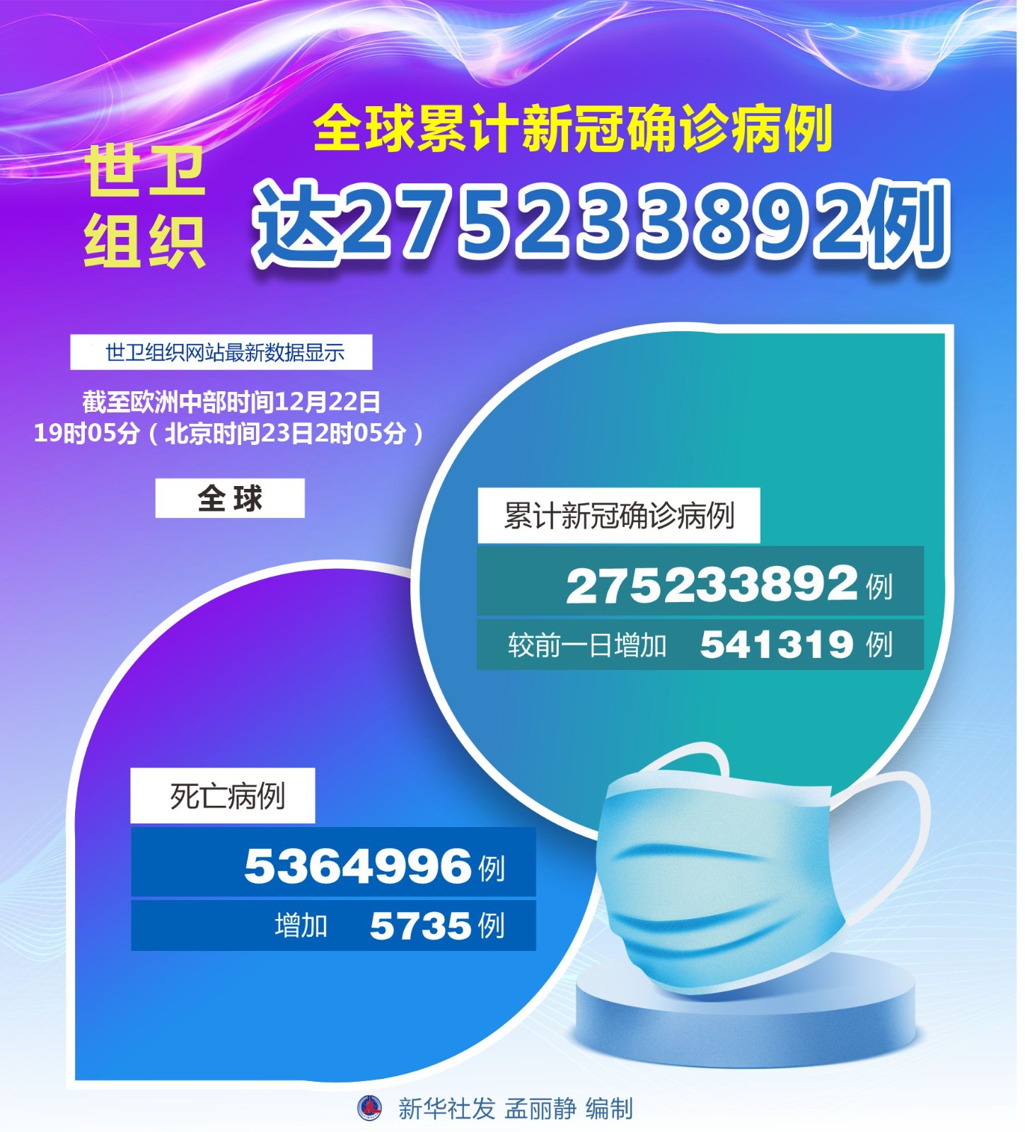 圖表:世衛(wèi)組織:全球累計(jì)新冠確診病例達(dá)275233892例