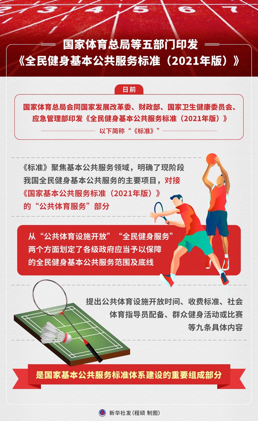 日前,國家體育總局會同國家發(fā)展改革委、財政部、國家衛(wèi)生健康委員會、應(yīng)急管理部印發(fā)《全民健身基本公共服務(wù)標(biāo)準(zhǔn)(2021年版)》(以下簡稱“《標(biāo)準(zhǔn)》”)。