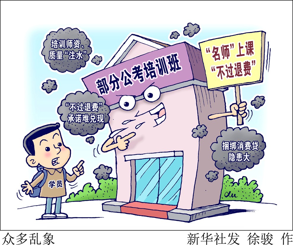 眼下,國家、地方公務(wù)員及選調(diào)生考試筆試大都已經(jīng)結(jié)束,一些地方面試因疫情推遲。為應(yīng)對(duì)公考筆試、面試,不少大學(xué)畢業(yè)生參加各種培訓(xùn)班。“新華視點(diǎn)”記者調(diào)查發(fā)現(xiàn),有些培訓(xùn)機(jī)構(gòu)所謂的“名師”,竟是招聘的“臨時(shí)工”;所謂“不過退費(fèi)”,有的難以實(shí)現(xiàn)。