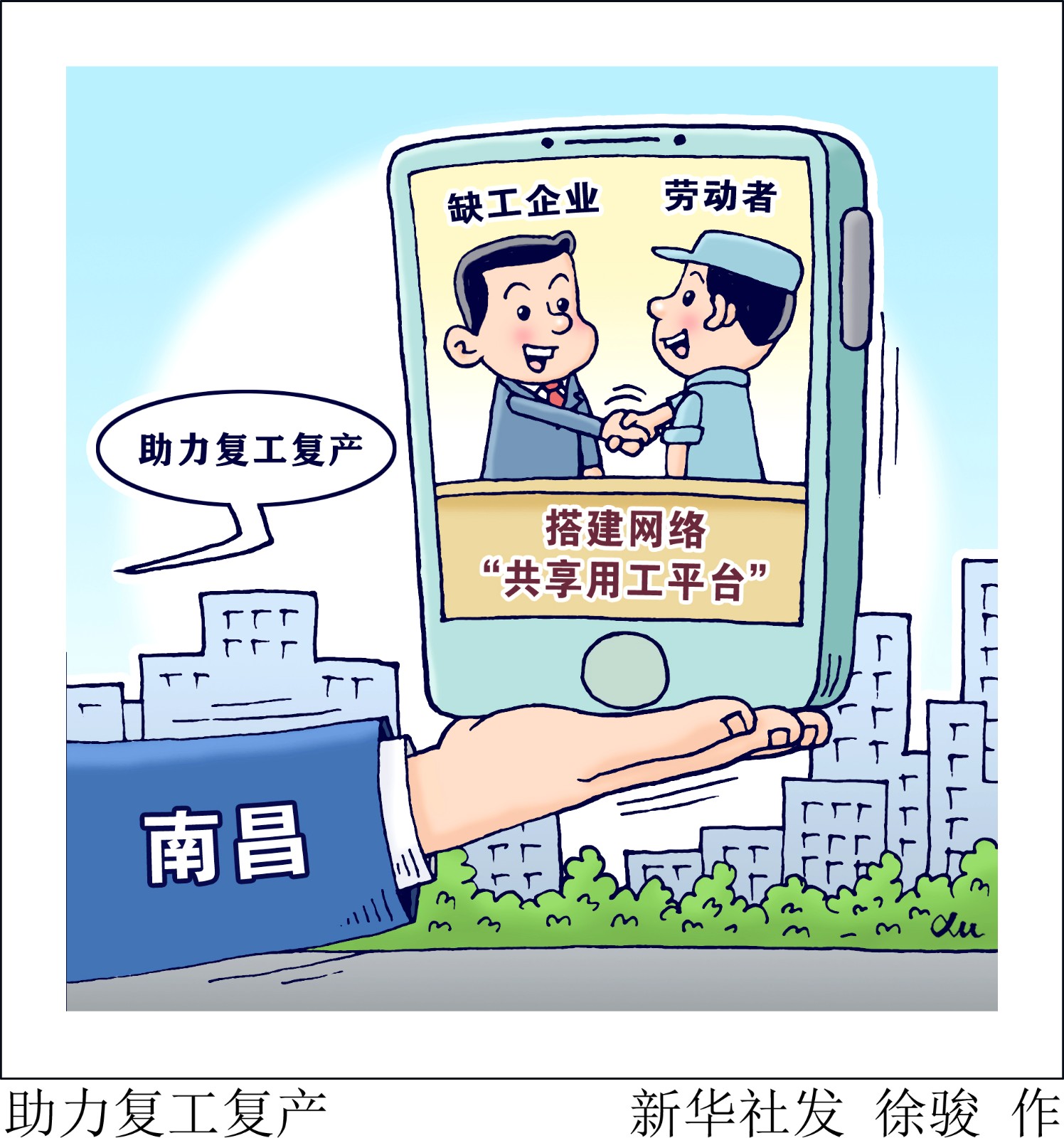 漫畫(huà):助力復(fù)工復(fù)產(chǎn)
