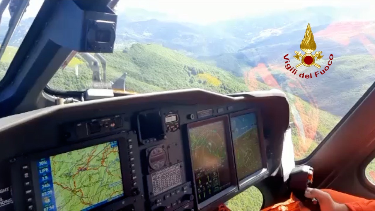 6月10日,消防部門人員駕駛直升機(jī)在意大利中部地區(qū)搜尋失蹤的直升機(jī)。