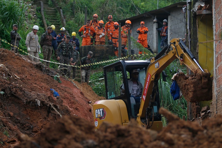 6月2日,救援人員在巴西伯南布哥州一處山體滑坡現(xiàn)場工作。