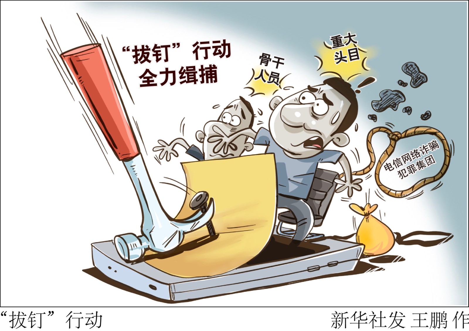 國務院打擊治理電信網(wǎng)絡新型違法犯罪工作部際聯(lián)席會議辦公室6月9日部署,在全國開展為期一年的“拔釘”行動,對電信網(wǎng)絡詐騙集團重大頭目和骨干人員開展專項緝捕。