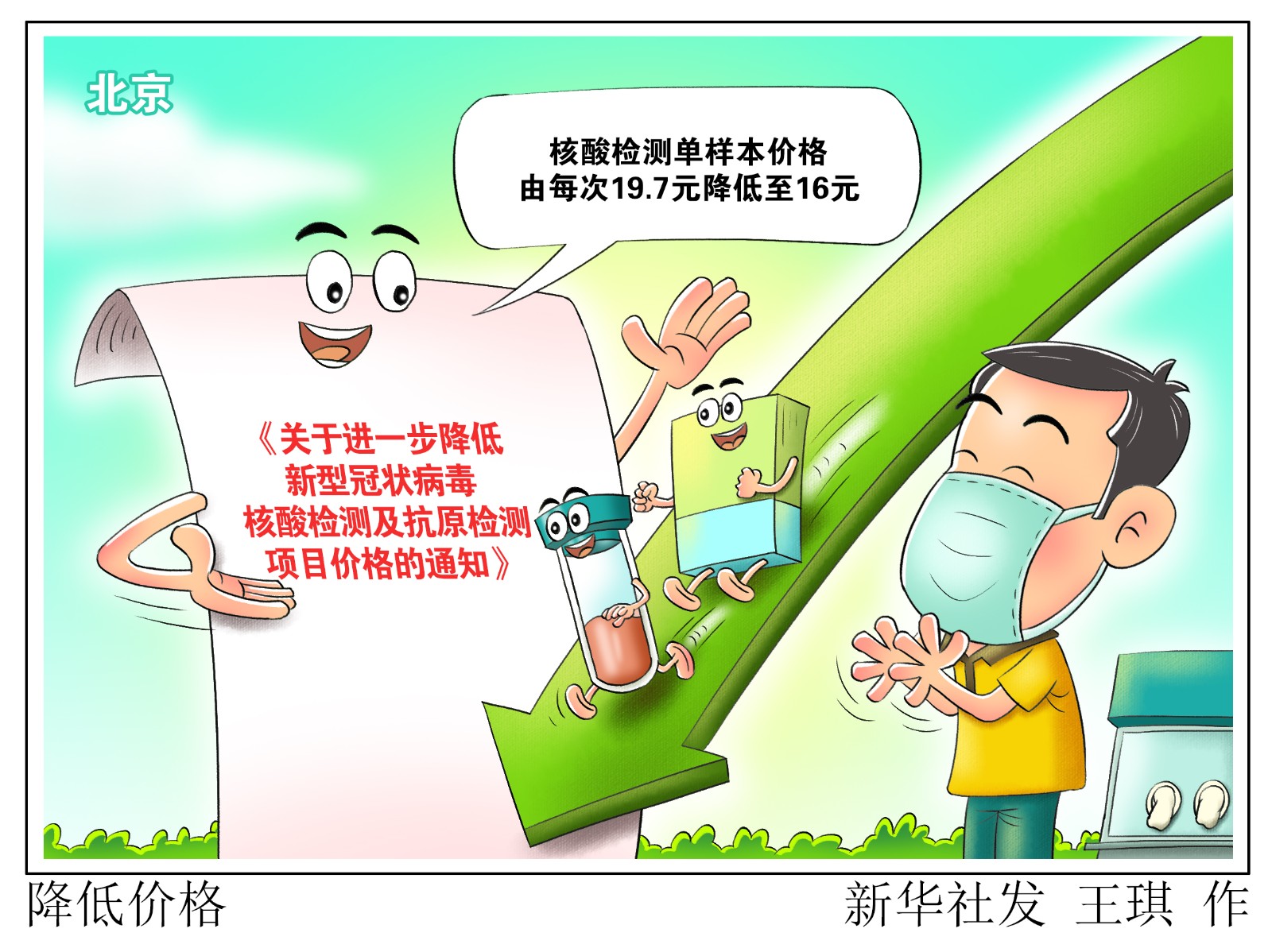 記者6月11日從北京市醫(yī)保局獲悉,北京市醫(yī)保局會(huì)同市衛(wèi)生健康委、市財(cái)政局以及市人力社保局印發(fā)《關(guān)于進(jìn)一步降低新型冠狀病毒核酸檢測及抗原檢測項(xiàng)目價(jià)格的通知》,自6月12日起北京市新冠病毒核酸檢測單樣本價(jià)格由每次19.7元降低至16元,混合檢測價(jià)格保持不變,仍為每人份3.4元(均包含采樣服務(wù)費(fèi)每人份0.8元)。