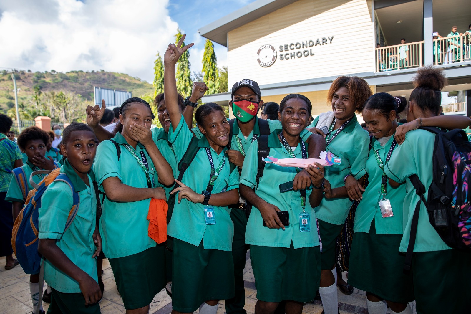 6月3日,在巴布亞新幾內亞首都莫爾茲比港的布圖卡學園,學生們展示紙質龍舟模型。