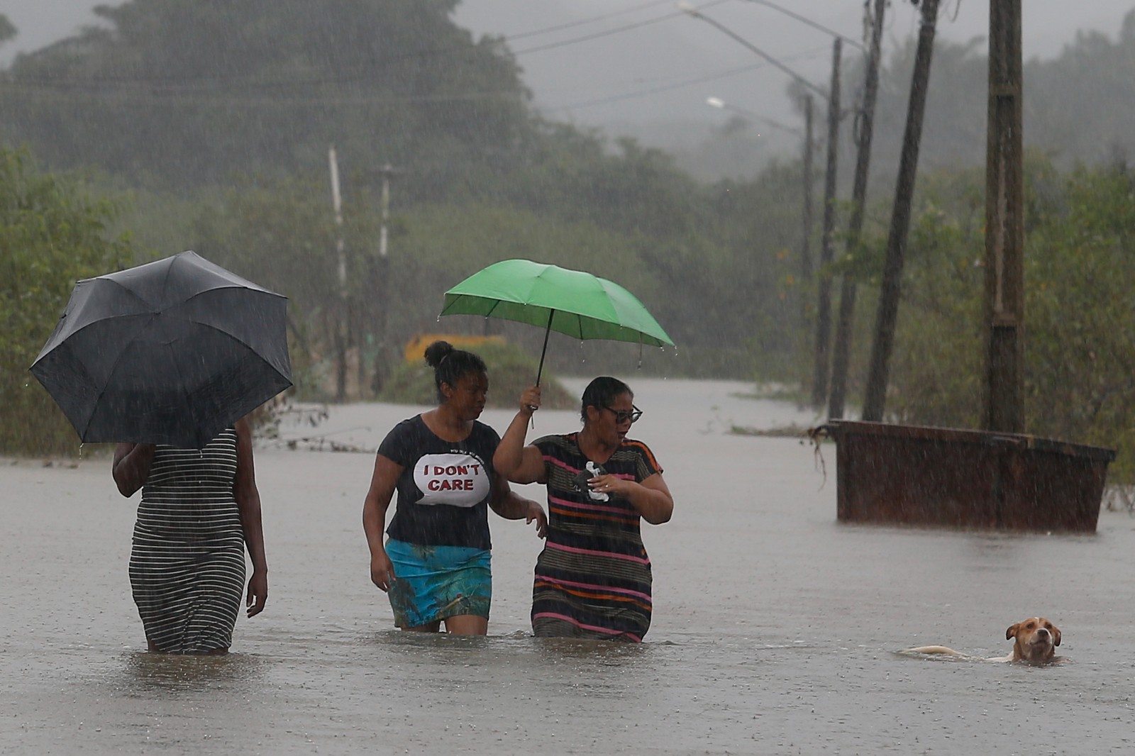 6月4日,人們走在巴西累西腓大都市區(qū)穆里貝卡鎮(zhèn)被洪水淹沒(méi)的街道上。