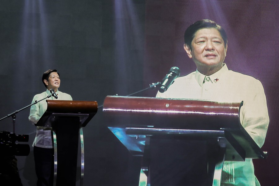 6月10日,菲律賓當(dāng)選總統(tǒng)費迪南德·羅慕爾德茲·馬科斯在馬卡蒂出席第二屆“中菲相知獎”頒獎典禮時發(fā)表講話。