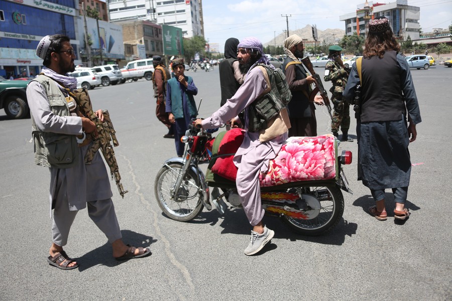 6月18日,安全人員在阿富汗喀布爾的襲擊現(xiàn)場附近警戒。
