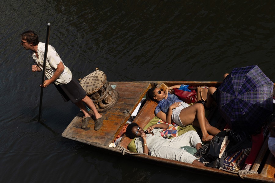 6月17日,人們?cè)谟?guó)倫敦乘游船享受陽(yáng)光。