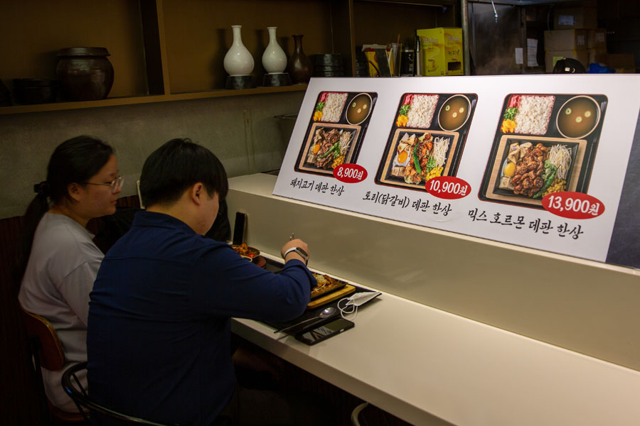 7月9日,人們在韓國高陽市一家餐廳用餐。