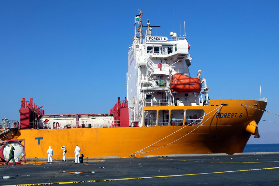 6月28日,工作人員在約旦亞喀巴的事故現(xiàn)場調(diào)查。