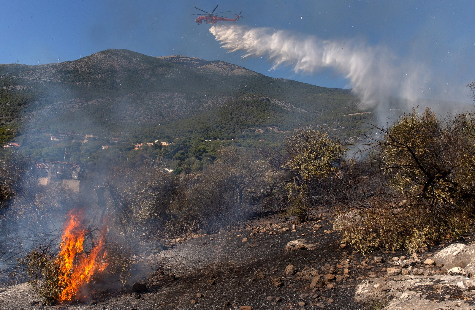 7月5日,一架直升機(jī)在希臘首都雅典西部郊區(qū)參加滅火行動。
