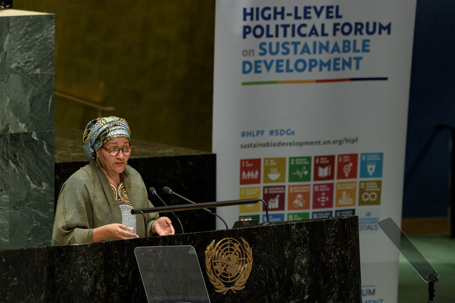 7月5日,在位于紐約的聯(lián)合國(guó)總部,聯(lián)合國(guó)常務(wù)副秘書長(zhǎng)阿明娜·穆罕默德在聯(lián)合國(guó)可持續(xù)發(fā)展高級(jí)別政治論壇上發(fā)言。
