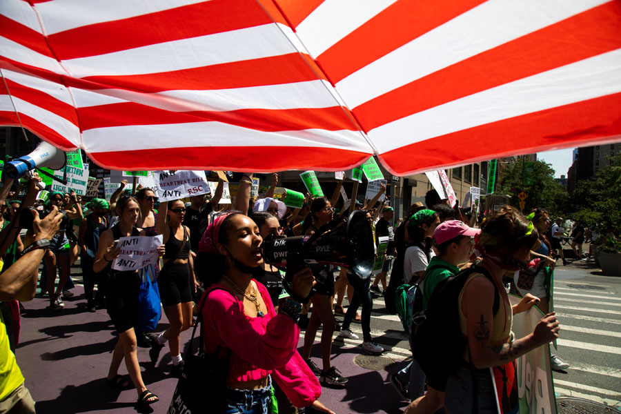 7月4日,墮胎權支持者在美國紐約舉行示威游行。