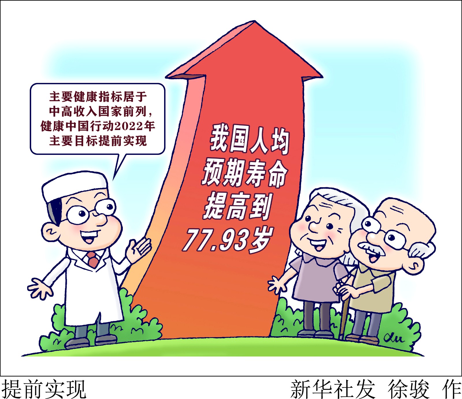 目前,我國人均預(yù)期壽命提高到77.93歲,主要健康指標居于中高收入國家前列,健康中國行動2022年主要目標提前實現(xiàn),重大慢性病過早死亡率低于全球平均水平,健康中國行動實施取得明顯階段性成效。