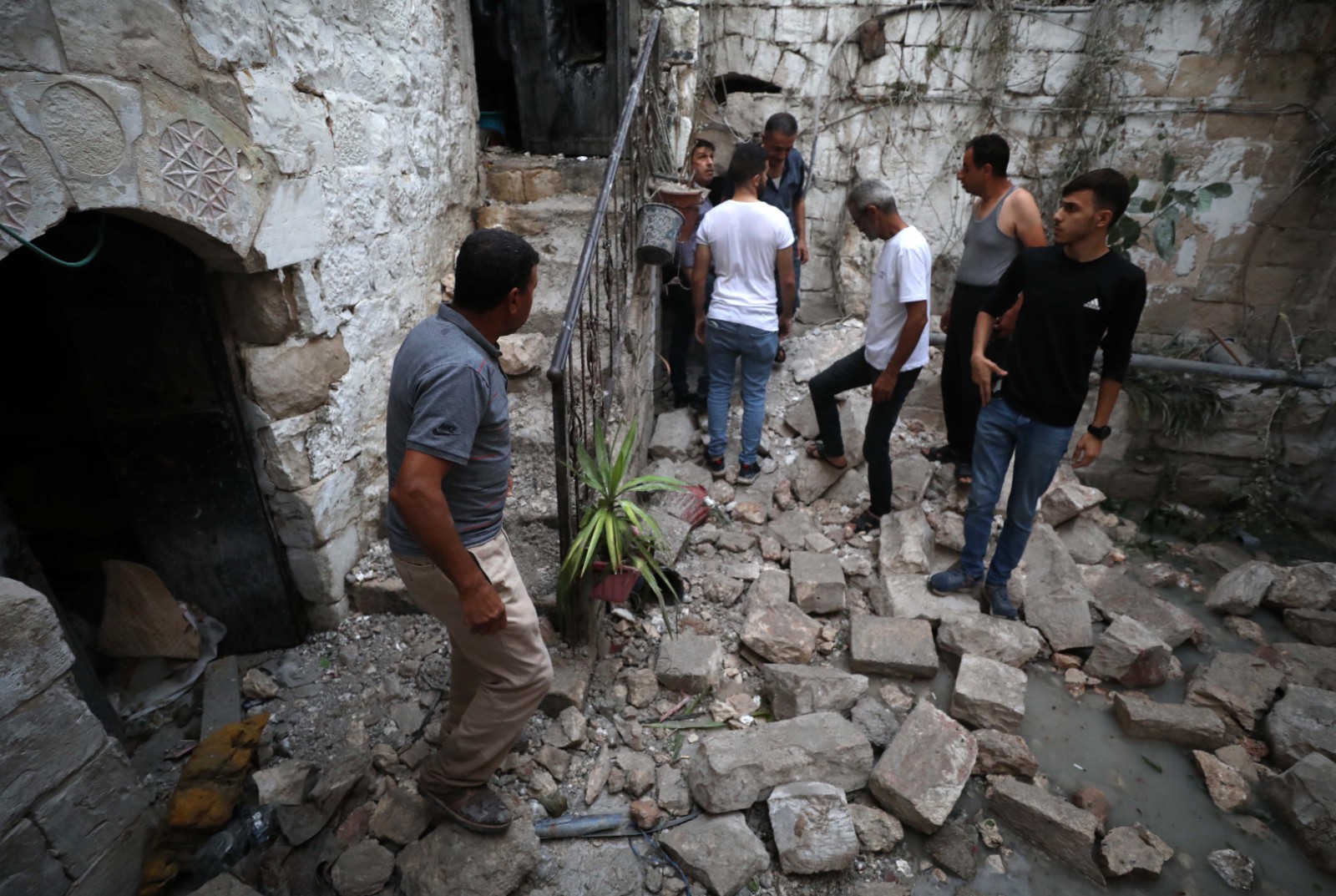 7月24日,在約旦河西岸城市納布盧斯,人們查看遭到以軍襲擊的房屋。
